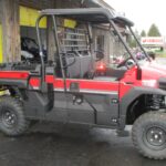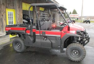 2025 Kawasaki Mule PRO-FX 1000 4×4 HD Edition UTV SXS. 3-person seating. Fuel injected 999cc twin cylinder engine. CVT automatic transmission, 2WD / 4WD and rear differential lock modes. EPS – Electronic Power Steering system with tilt wheel. Disc brakes, longer travel suspension, 11.8″ of ground clearance and steel wheels with 26″ radial tires. This SxS can carry the load – 1,ooo lb bed capacity and up to 2,000 lb towing capacity. Longer rear hydraulic dump box can handle a full-size pallet and self-leveling rear suspension helps keep everyone safe. Has both LED and halogen headlights, sun top / roof, under seat storage and a heavy-duty front bumper too. Real nice Side x Side in the Firecracker Red color and comes with the Kawasaki Strong 3-year warranty. No hidden fees or charges We take trade-in’s too !!