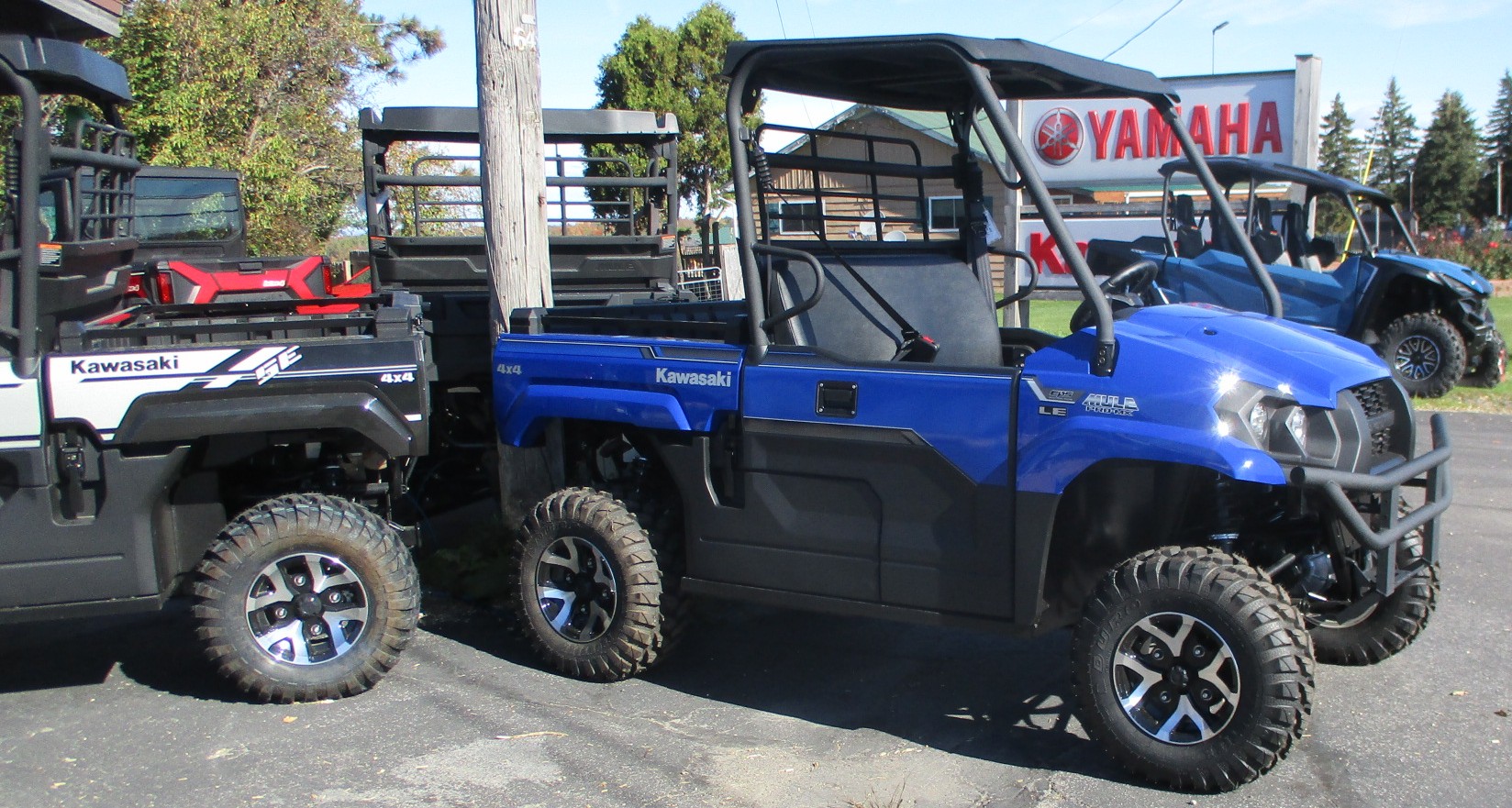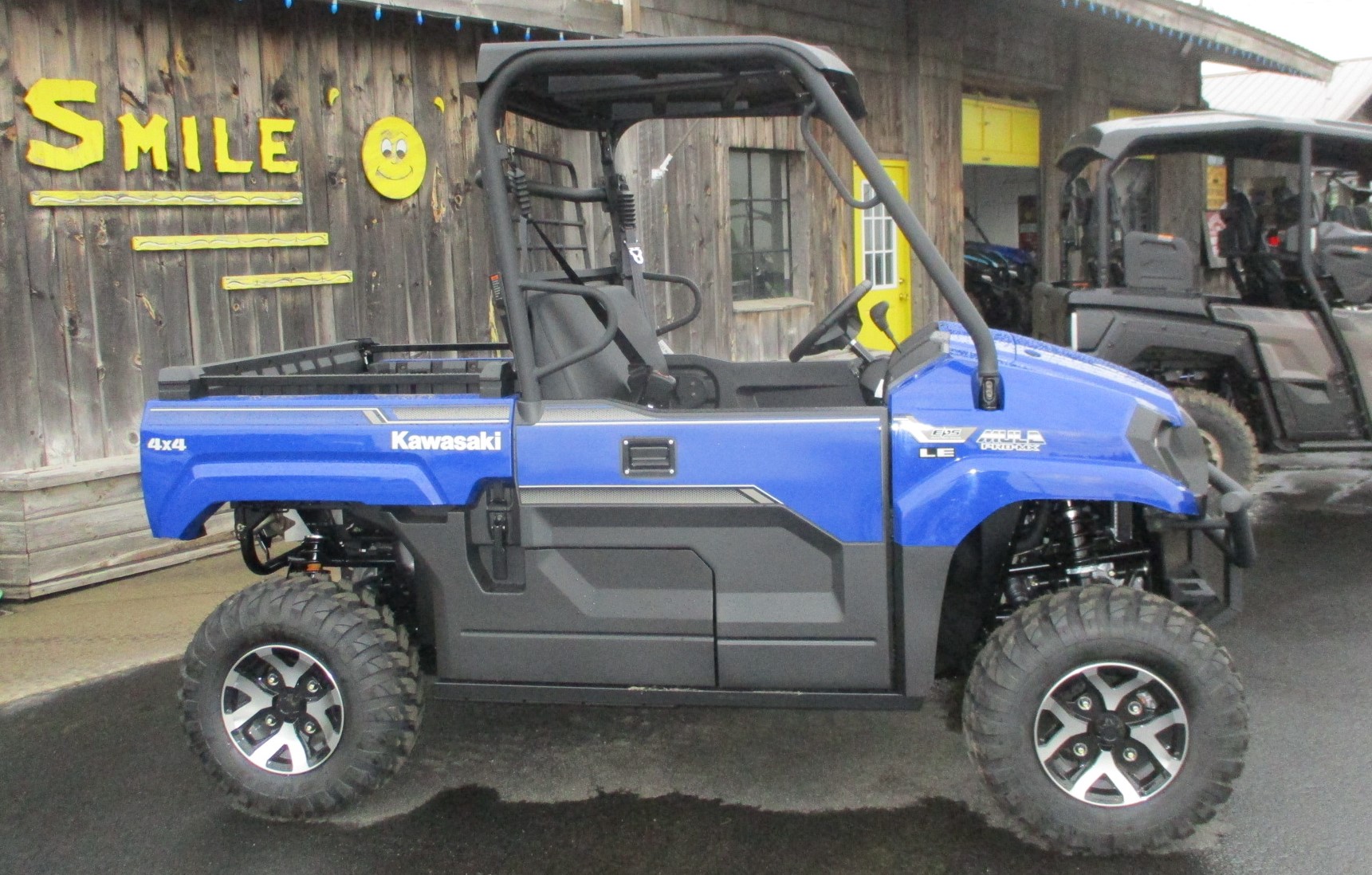 $1250 Factory REBATE is on now !! 2025 Kawasaki MULE PRO-MX EPS LE mid size UTV / SxS offers a comfortable fit for two passengers. Has the muscle to get the work done so there is more time for fun on the trails. Color is called Deep Blue. The LE package includes poly roof, tilt wheel, EPS power steering and cast aluminum wheels with 25″ tires. Fuel injected 695cc engine and the CVT automatic transmission. Selectable 2WD, 4WD and rear differential lock. Independent front and rear suspension. EPS power steering with tilt wheel. 699 lb cargo bed load and 1500 lb towing capacity. Halogen and LED headlights. Comes with Kawasaki’s awesome 3 year warranty. No hidden fees or charges – $15,068 including REBATE. We take trade-in’s too !