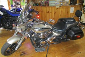 2010 Yamaha V-Star 950 Tourer Edition with only 11,822 miles. This touring motorcycle comes set up from the factory to take you down the road in comfort. 950 cc V-Twin fuel injected motor, 5 speed transmission, belt drive and those cool cast mag wheels. Engine is designed for low to mid range torque and the bike has a well balance feel with low seat height at only 26.6″. Driver floorboards, windshield, saddlebags, passenger backrest and more. Nice bike for $4995.