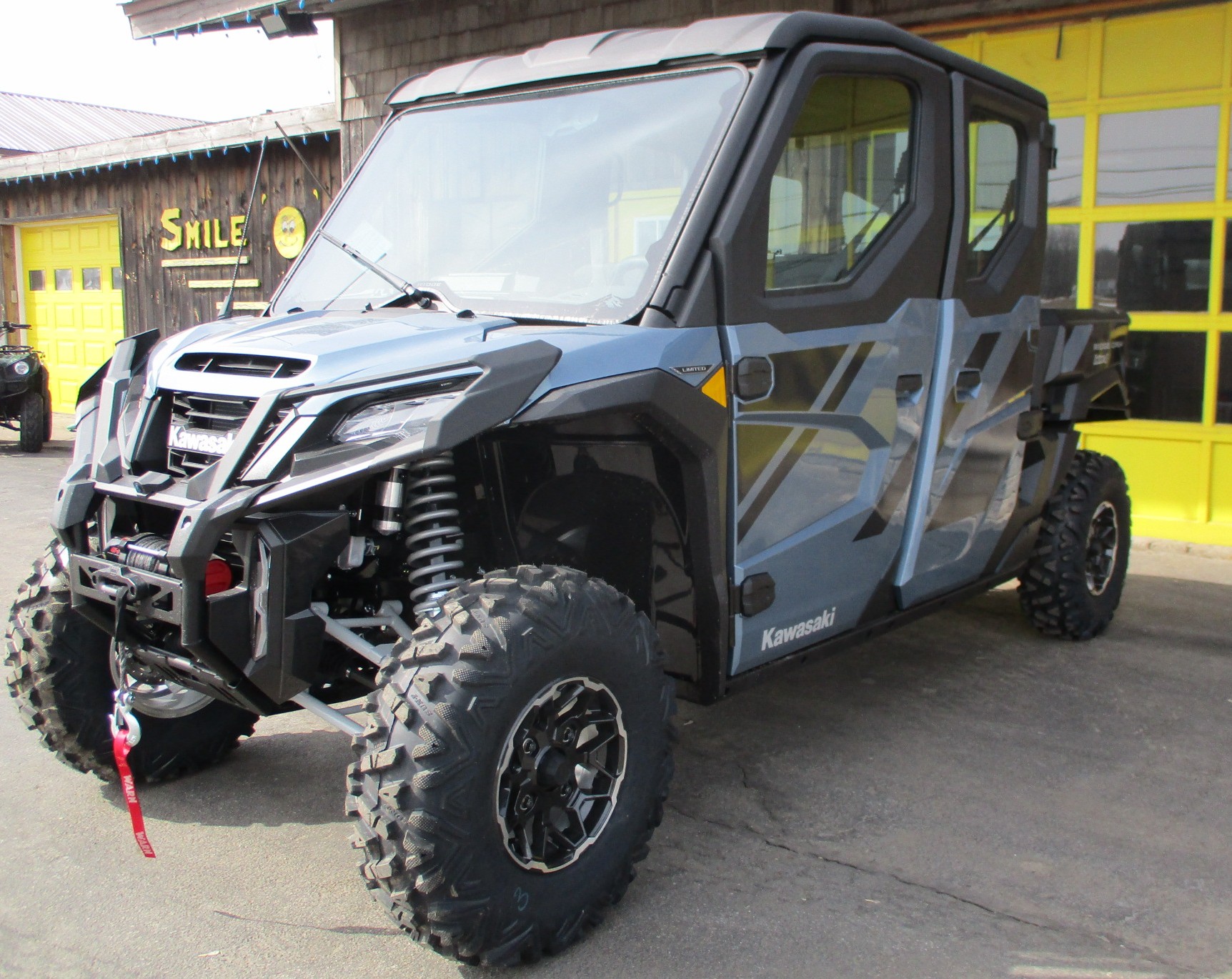 $4,000 Factory REBATE is on now !! 2025 Kawasaki Ridge XR Crew HVAC Limited – Amazing 5 Passenger 4 door Premium year round SxS / UTV. Color is called Metallic Bluish Gray. Total Heat, A/C and Ventilation system. Warn winch, 8″ Garmin navigation system, Audio system with 8 speakers, Rideology APP and 7″ full screen TFT instrumentation. EPS rack & pinion power steering with tilt wheel, power windows & windshield wiper. High output 116 hp smooth 4 cylinder engine with adjustable power delivery modes, CVT transmission with High & Low range, selectable 4wd with locking front & rear differential. Rides on cast aluminum wheels with 30″ Duro tires and lots of ground clearance. 1,000 lb capacity dump box and so many more features. Stop in and check this one out !! No hidden fees or charges – $36,333 including REBATE. We take trade-in’s too !